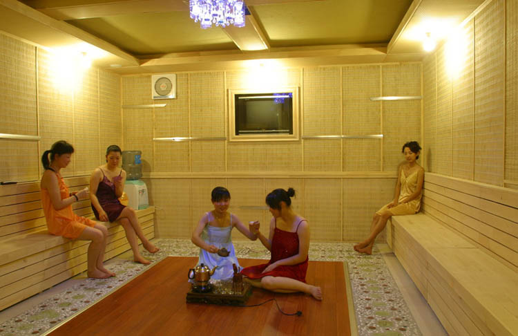 韓式汗蒸房發(fā)展至今,種類(lèi)繁多。韓式汗蒸幕是將黃土和各種寶石類(lèi)石頭加熱,讓浴者悠閑的或躺或坐在汗蒸幕內,利用純天然寶石材料放 射出的對人體有益的元素,使身體大量出汗加速血液循環(huán),使得沉積在體內的雜質(zhì)或廢物,隨著(zhù)汗水排泄出來(lái),以達到新陳代謝和養顏美容的效果。